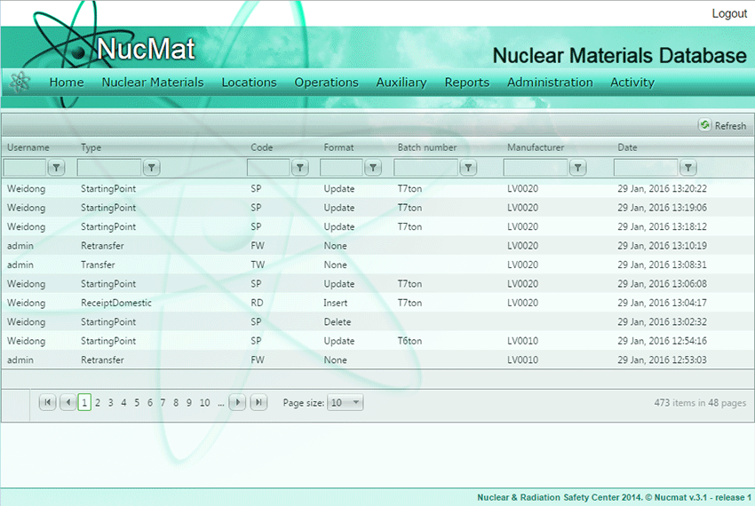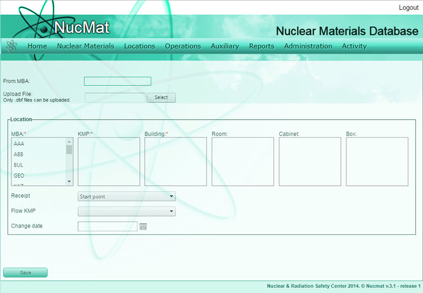 To facilitate automatic exchange of nuclear material accounting data between Facility/LOF and State levels NUCMAT allows transferring up-to-date information from Facility/LOF to State office in charge for nuclear material accounting for via corresponding Export /Import MBA functions.