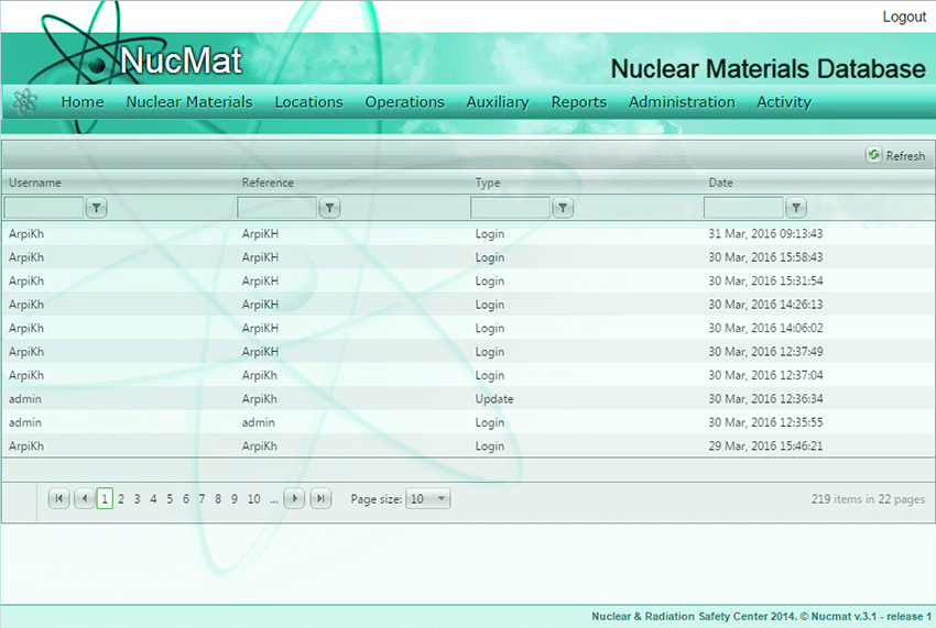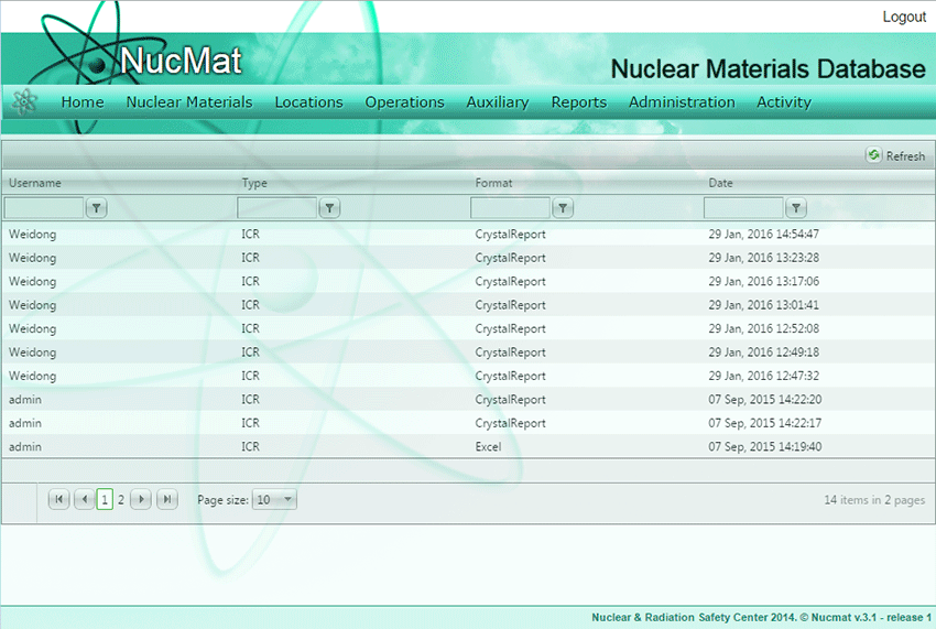 NUCMAT allows you to view all activities (see Fig. 9.4-9.7) which lead to: