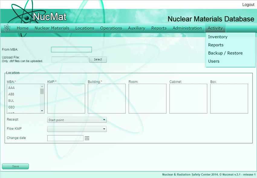 · созданию резервных копий базу данных NUCMAT